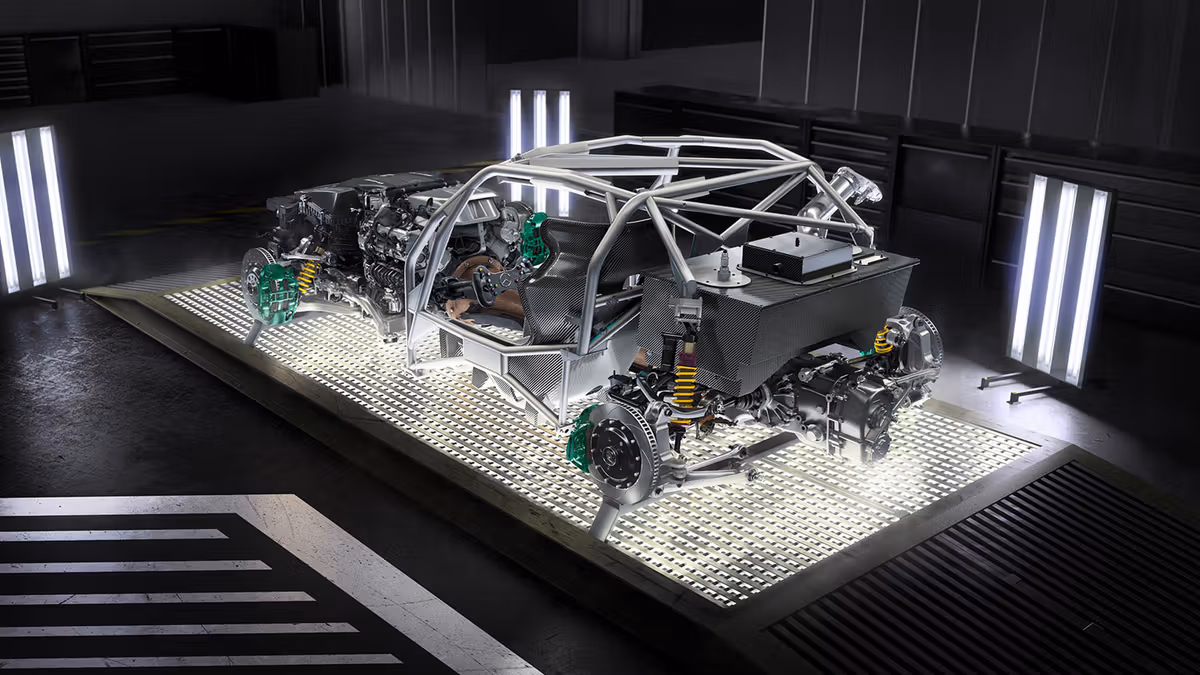 The sequential six-speed racing gearbox is placed in transaxle configuration on the Mercedes-AMG GT4’s rear axle and is pneumatically operated. A self-locking differential, mechanically adjustable from the outside, optimises the handling for the specific requirements in racing.